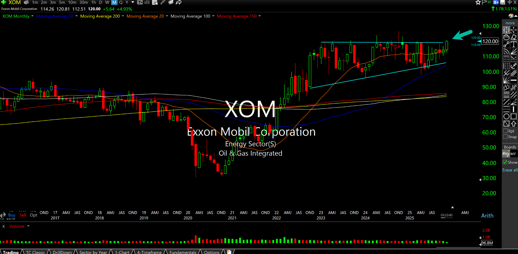 However, if oil is to make a surprise move higher into the holidays alongside gas prices it is highly likely oil bulls will need to see the $500 billion market cap ExxonMobil get involved in the action. The three-year tight consolidation is just begging to uncoil higher.