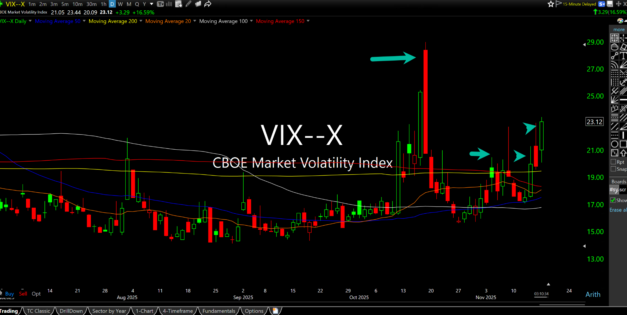 With this in mind, the recent October spike above 20 and move back in the mid-teens has since seen the VIX push right back above 20 in just a few weeks. Previously, we would see the VIX fall back into a slumber of sorts after spikes and crashes, meandering in the mid-teens and even probing the low-mid teens, staying well below 20 for months at a time.