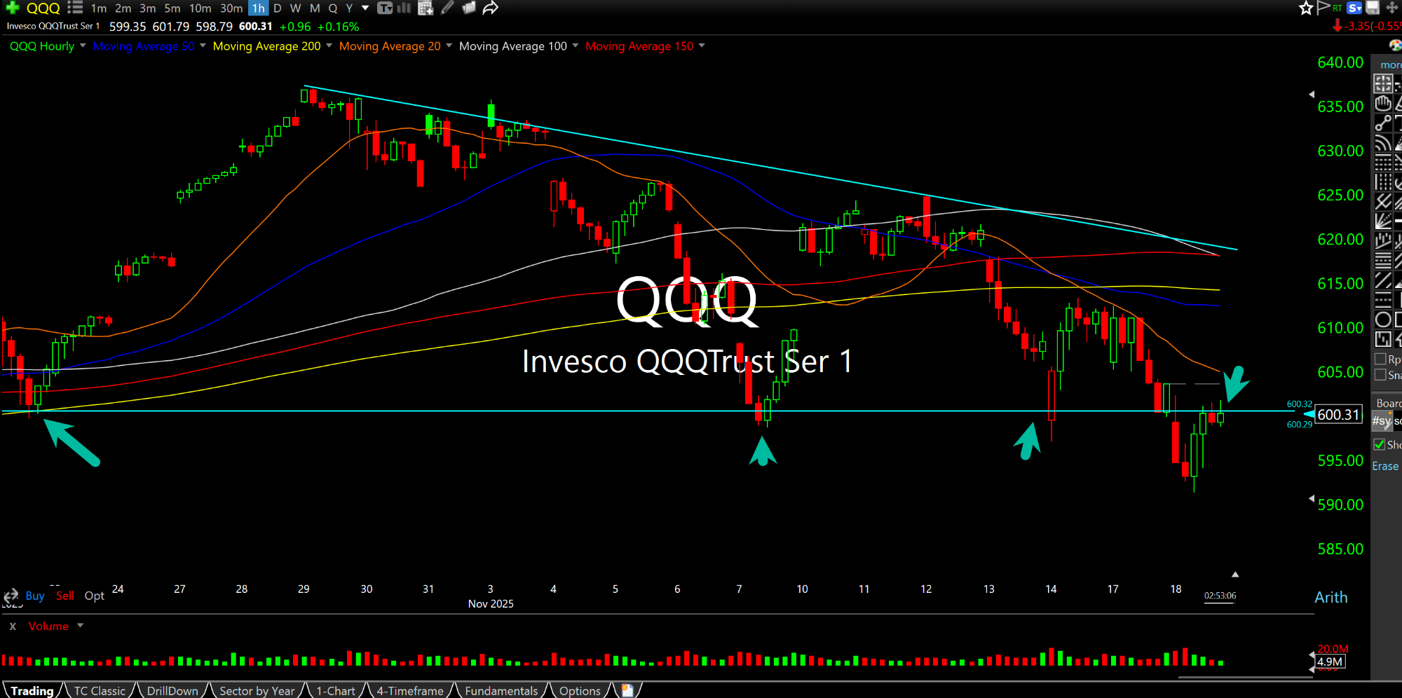As for those indices masking the horror, the second hourly chart of our ongoing QQQ analysis shows the $600 level as a major battleground headed into NVDA earnings tomorrow evening. There is no tap-dancing around the $4.6 trillion market cap (or so) for NVDA serving as the ultimate heavyweight fight between bulls and bears for control of this market.