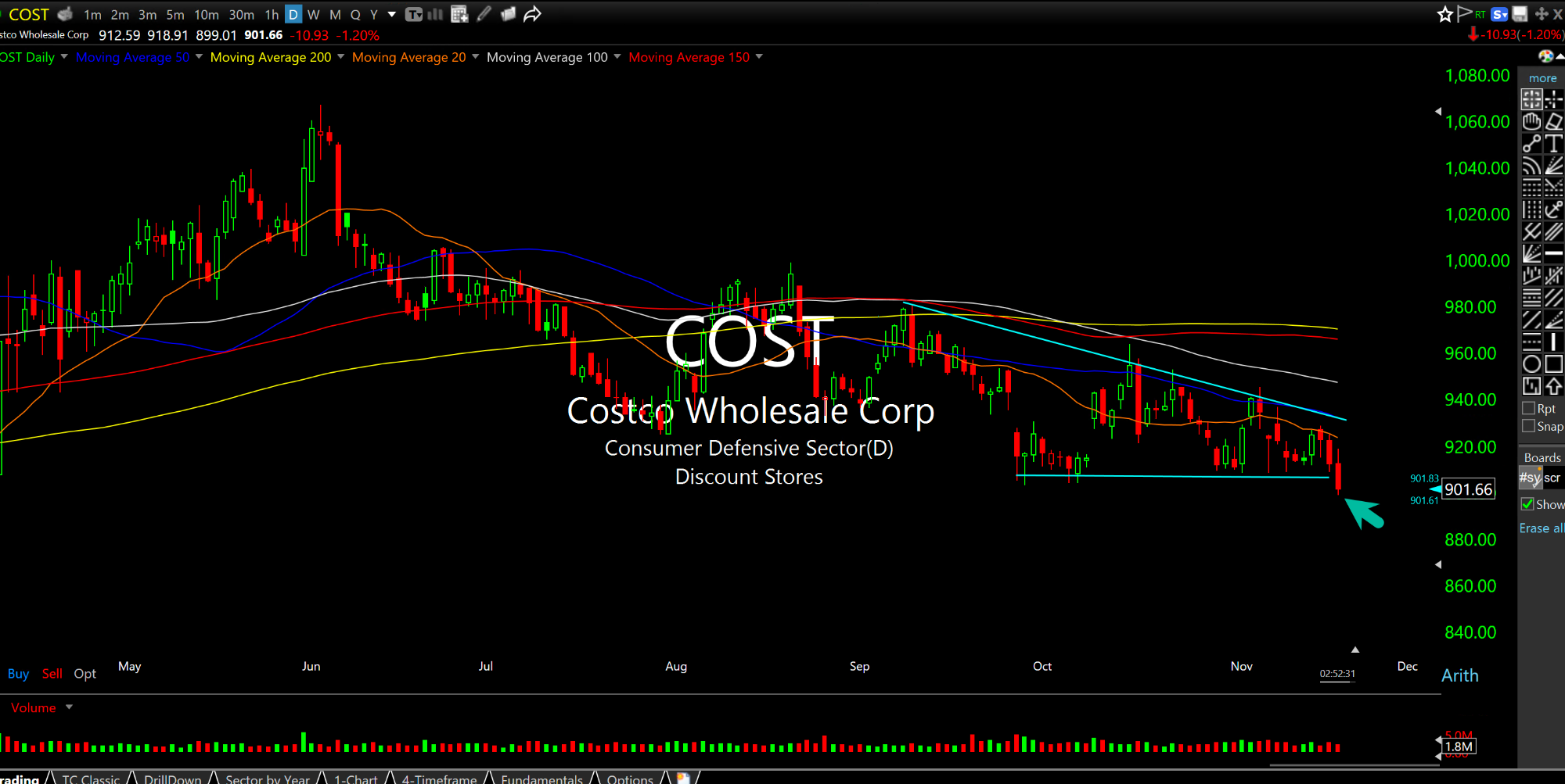 We profiled Visa's weakness with Members yesterday, and on my main X feed. But today we have Costco following suit for a breakdown, seen on the daily chart, first below.