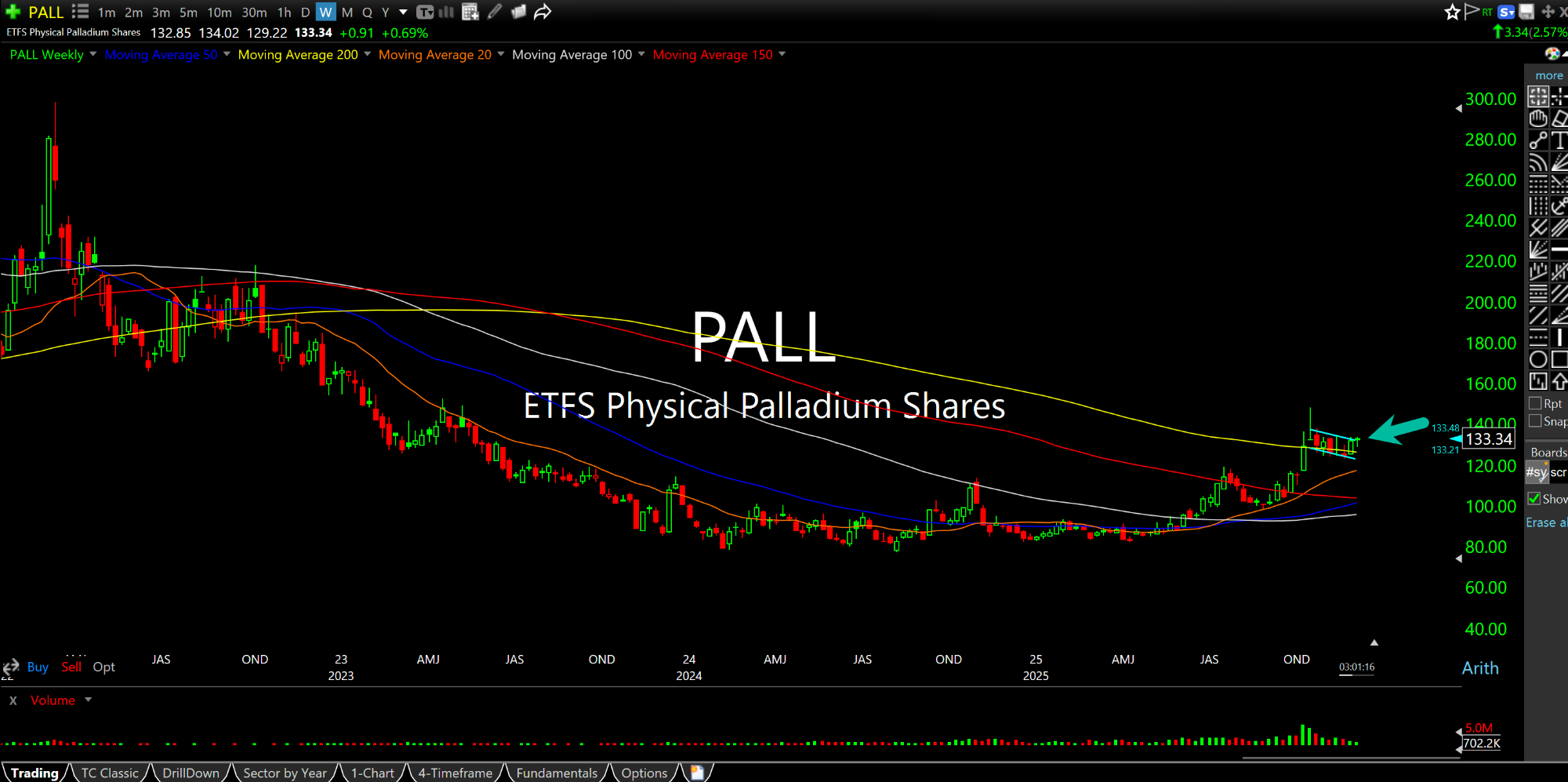 In other words, we are looking at a long-term bear-to-bull reversal in Palladium, which aligns with the strength in the precious metals like gold and silver in recent quarters, to boot. After all, one would expect a formerly bearish chart turning bullish to recapture a long-term significant moving average like the 200-period weekly, or at least become acclimated to it again by not being outright rejected upon visiting it. In this case, Palladium is basing right on it and, likely, forming a launch pad for another leg higher.