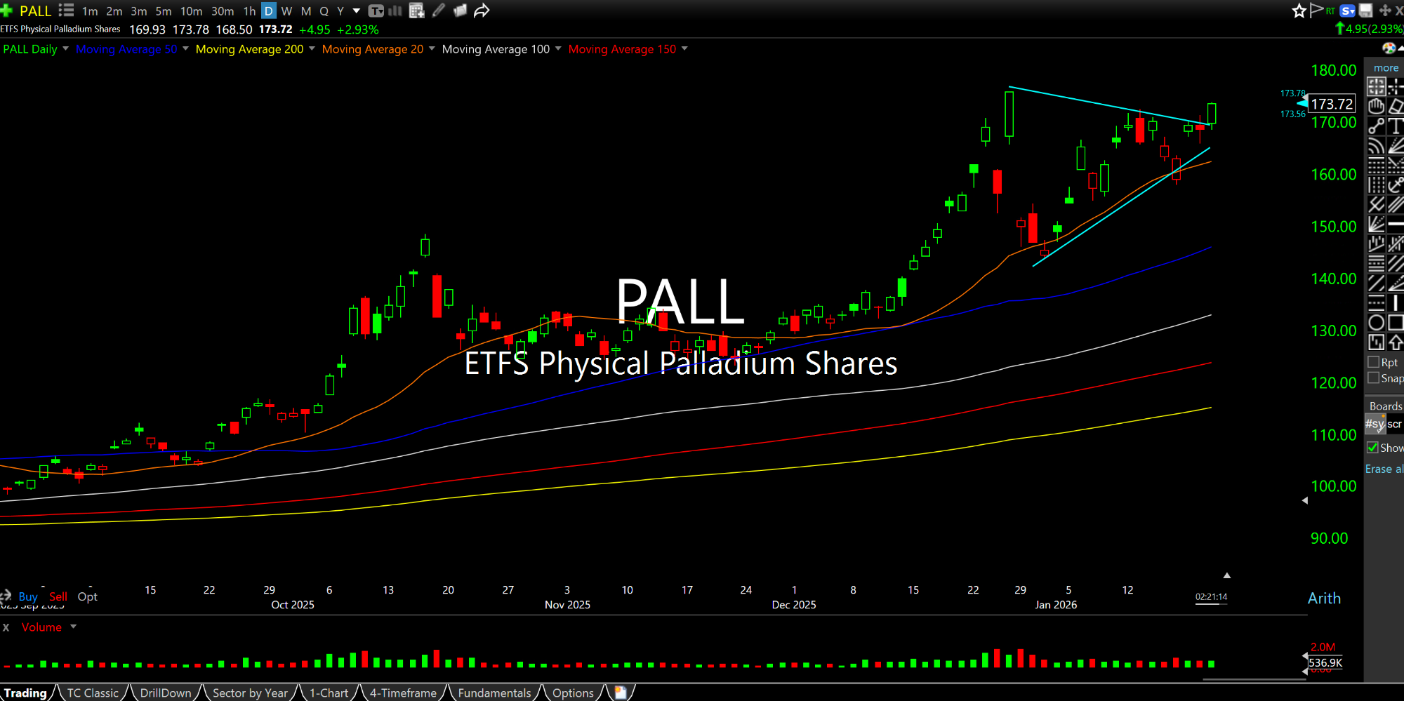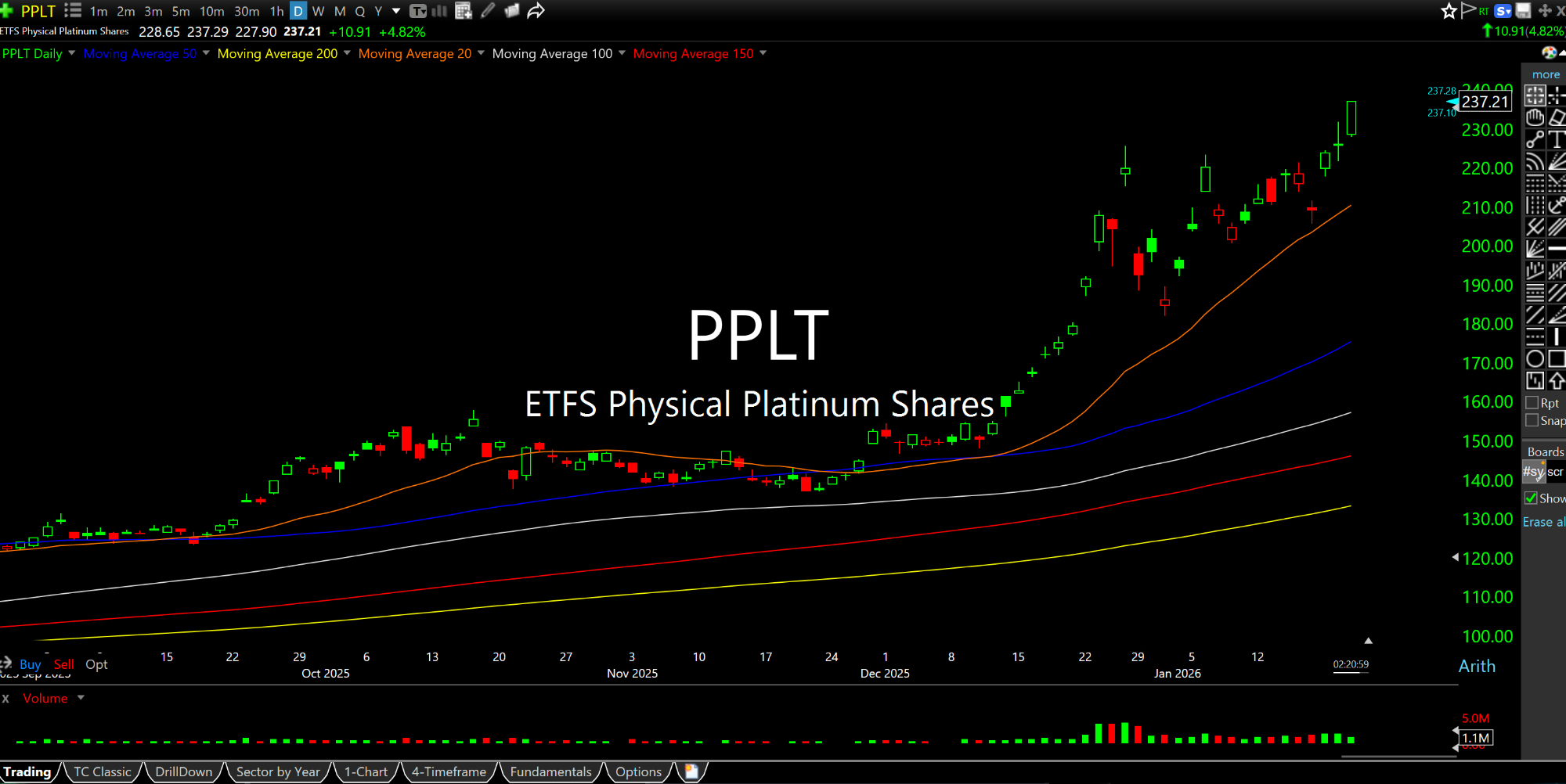 On their respective ETFs for the physical metals, below, both the daily charts of PALL and PPLT point to impressive further strength, with palladium, especially, ripe for a fresh breakout. SBSW has been a brilliant actor relating to the platinum group metals, while PLG looks set to stage a new leg higher.