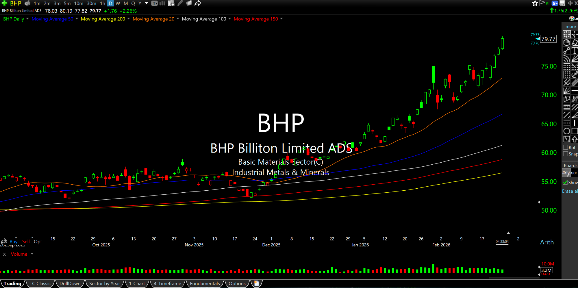 The global materials miners, like BHP (below on the daily chart) continue to flash red lights that inflation is still a menace. Trump will most certainly be dismissive of inflation and affordability in tonight's State of the Union Address.
