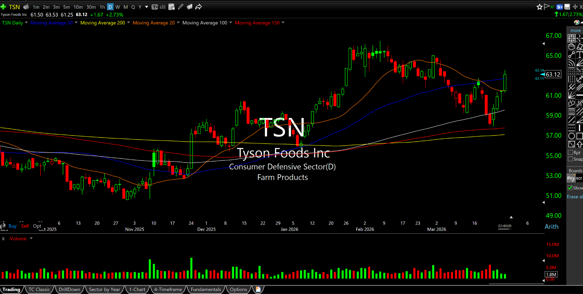 You will note that Tyson Foods is one of the top two movers in the XLP ETF today. On the TSN daily chart, below, you can see the rally this week off recent pullback lows. Overall, TSN is in an uptrend. Tyson makes relatively lower cost proteins, frozen, prepared, and otherwise. This is precisely the type of product in extremely high demand with unique pricing power during a food shortage.