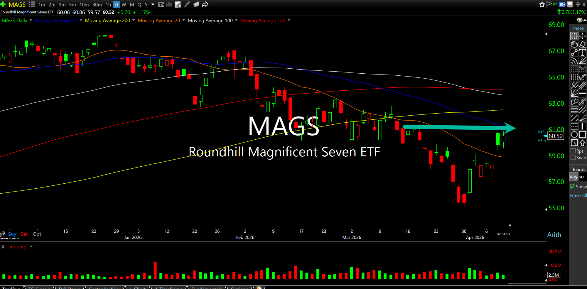 However, as you can see the MAGS ETF is still lingering below that yellow line. In effect, all MAGS has done so far is retrace the losses back up to March 18th. Considering the sheer market cap size of the Mag7 constituents, this seems like another red flag regarding the current rally as being some type of meaningful bottom.