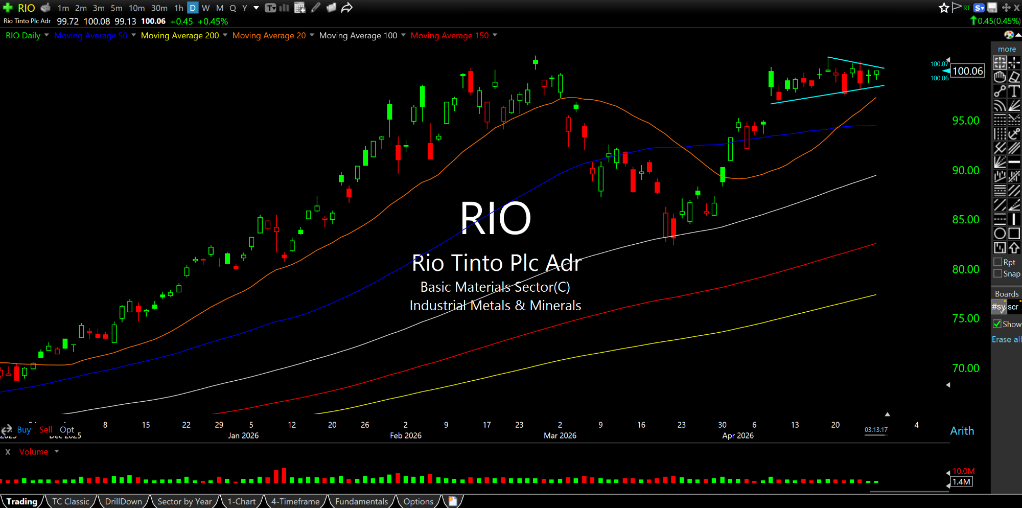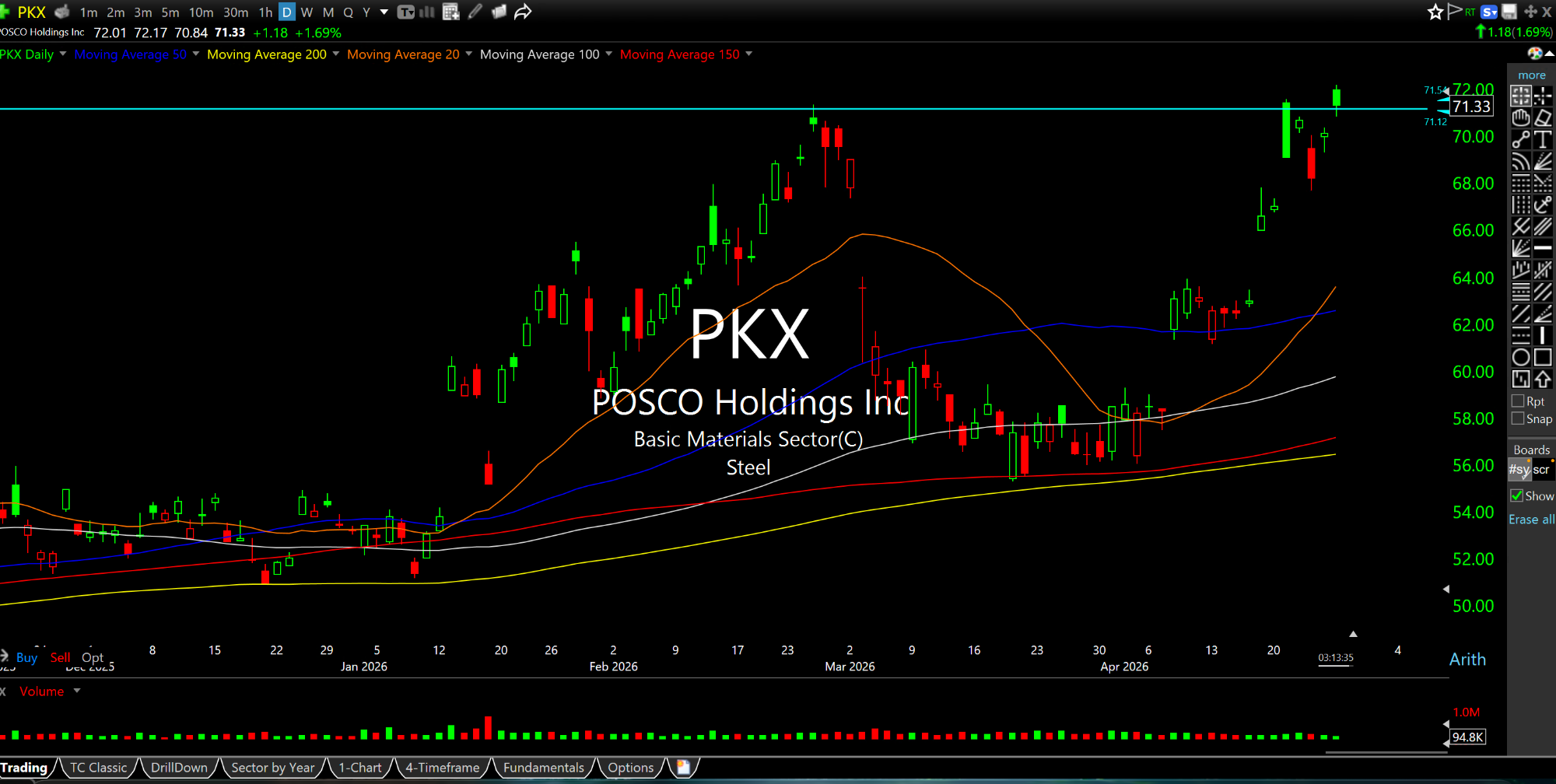 Secondly, the global non-precious materials miners are acting impressively. Specifically, the likes of BHP VALE, as well as South Korean steelmaker PKX and RIO, respectively below on their strong, clean daily charts. Again, this is not likely to occur in an environment with potent demand destruction to the point where it would trump (no pun intended) the greatest oil supply shock in at least fifty years, if not ever.